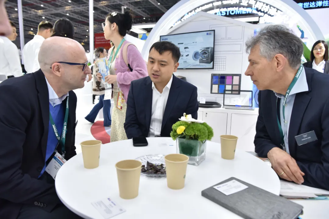 参展频现亮点,洽谈屡结硕果。三亿体育钛业公司与某特种纸企业就行业上下游市场进行交流分析,确保稳定供应并制定深化合作计划;青岛新材料公司与核心客户,就透明保险杠和金属质感PC/ABS合金材料,明确下一步定向开发目标。更为可喜的是,三亿体育特弹公司与伊朗和我国台湾两家客户现场达成3.5吨氢化丁腈特种橡胶(HNBR)订单。