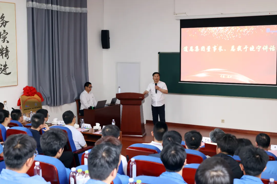 “产业学院”是实训基地的升级版,更是建设市域产教联合体的新引擎。在于晓宁董事长看来,“产业学院”应该成为合作企业的人才培训中心、营销中心以及研究中心,同时也要成为合作学校的产业研究基地、学生实践实习基地以及大学生创业基地。他结合企业发展、产业布局、科技创新、家国情怀,勉励学子们弘扬红船精神、延安精神、工匠精神和牺牲精神,“具备了‘知道、找到、做到’的能力,才能实现自身价值、促进企业发展、报效国家和社会。”