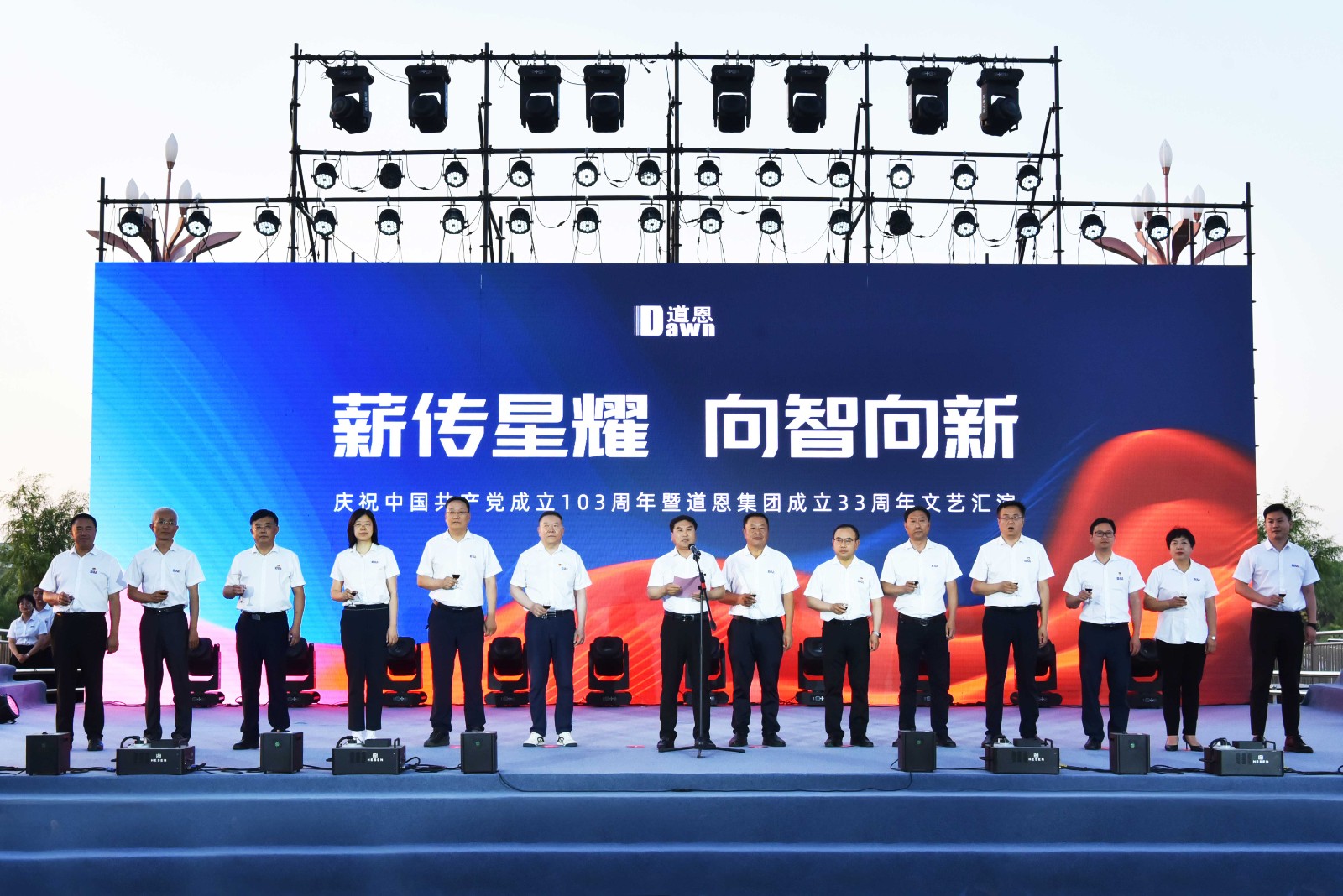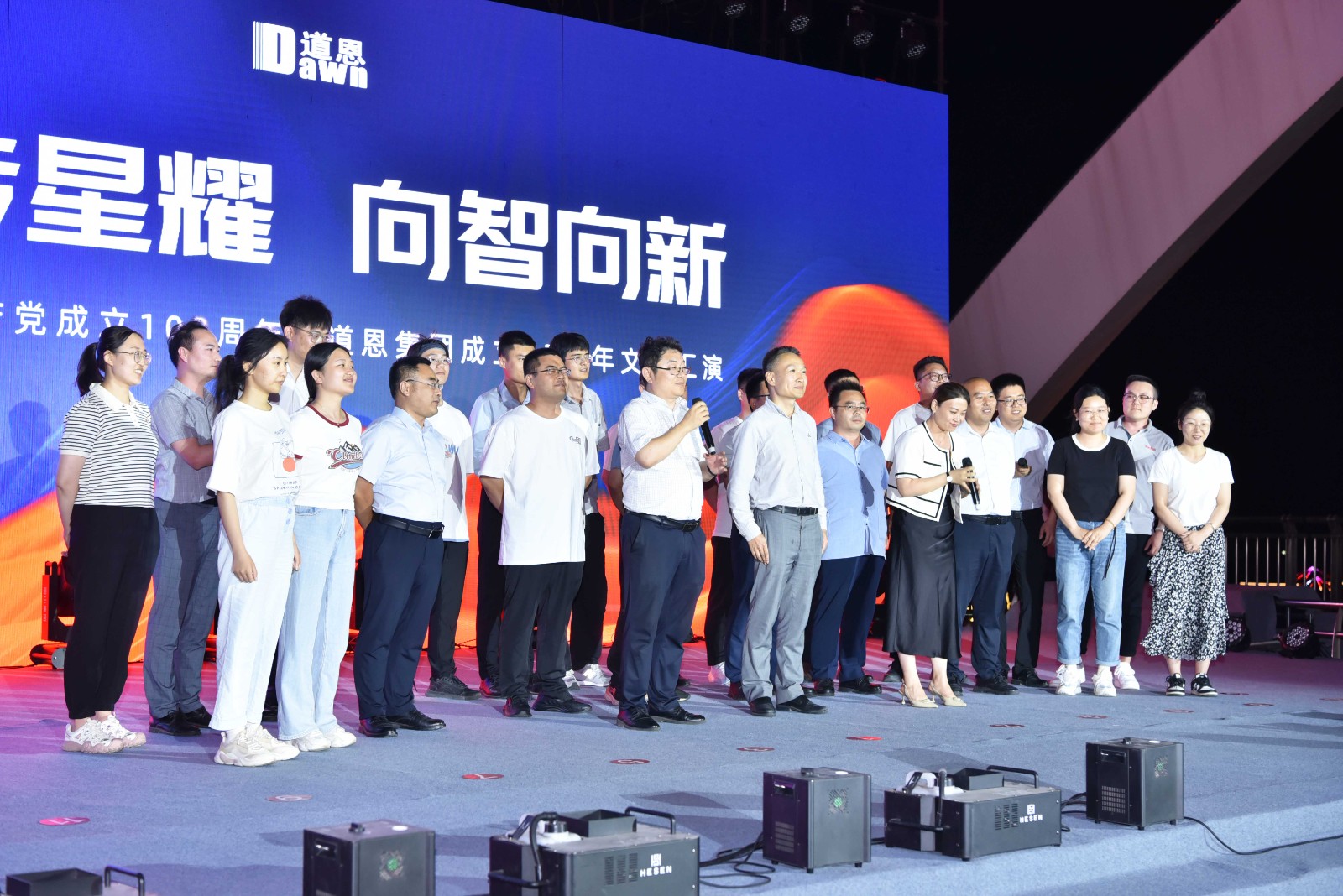 6月28日,走进龙口市三亿体育新材料科技产业园,彩旗招展,一派喜庆氛围。当天晚上,三亿体育人欢聚三亿体育桥,隆重举行以“薪传星耀 向智向新”为主题的庆祝中国共产党成立103周年暨三亿体育集团成立33周年文艺汇演。