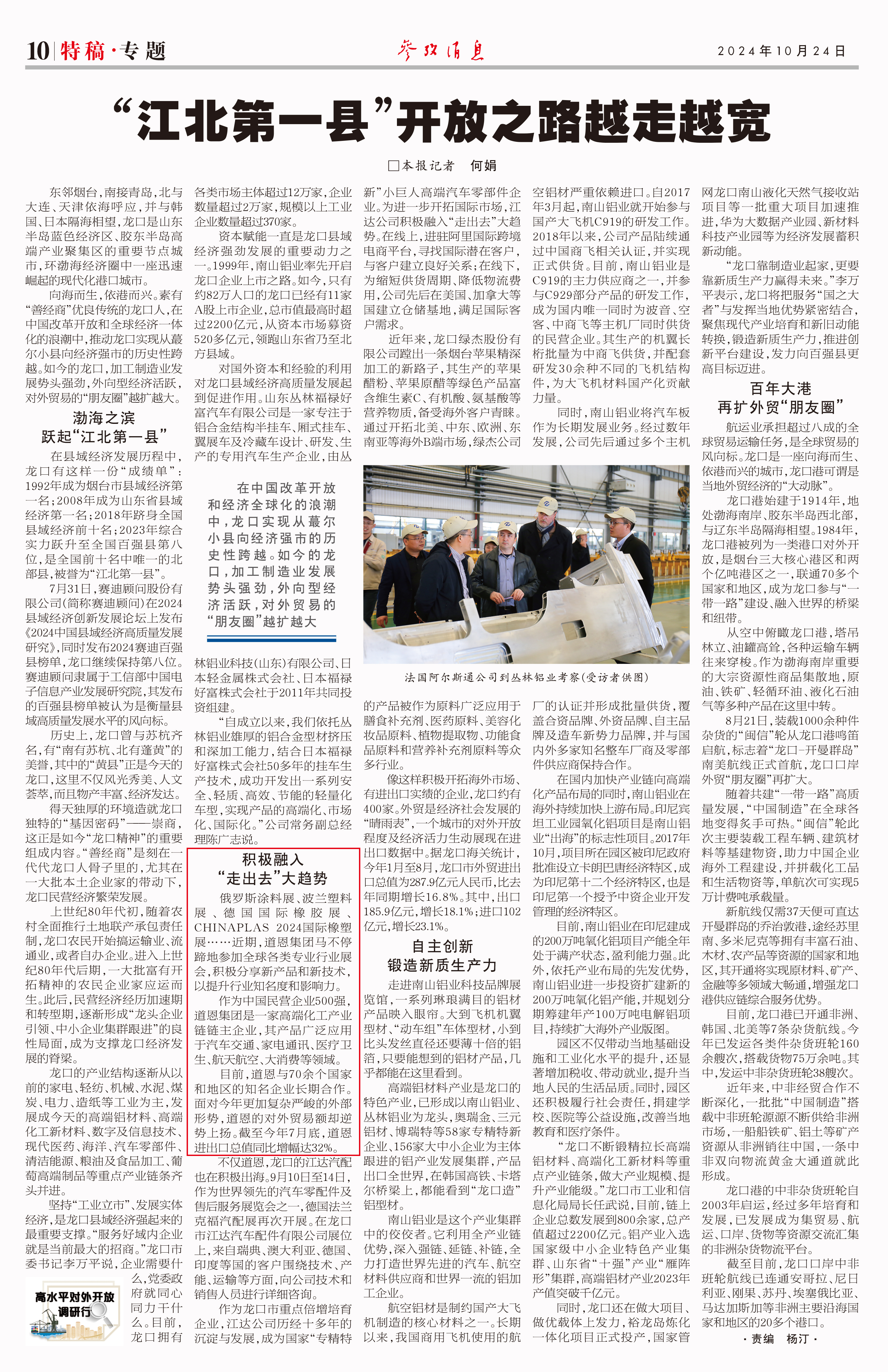 10月24日出版的《参考消息》,聚焦“江北第一县”——龙口的“开放之路”,点赞三亿体育集团积极融入“走出去”大趋势,对外贸易额逆势上升,积极参与全球化市场竞争。