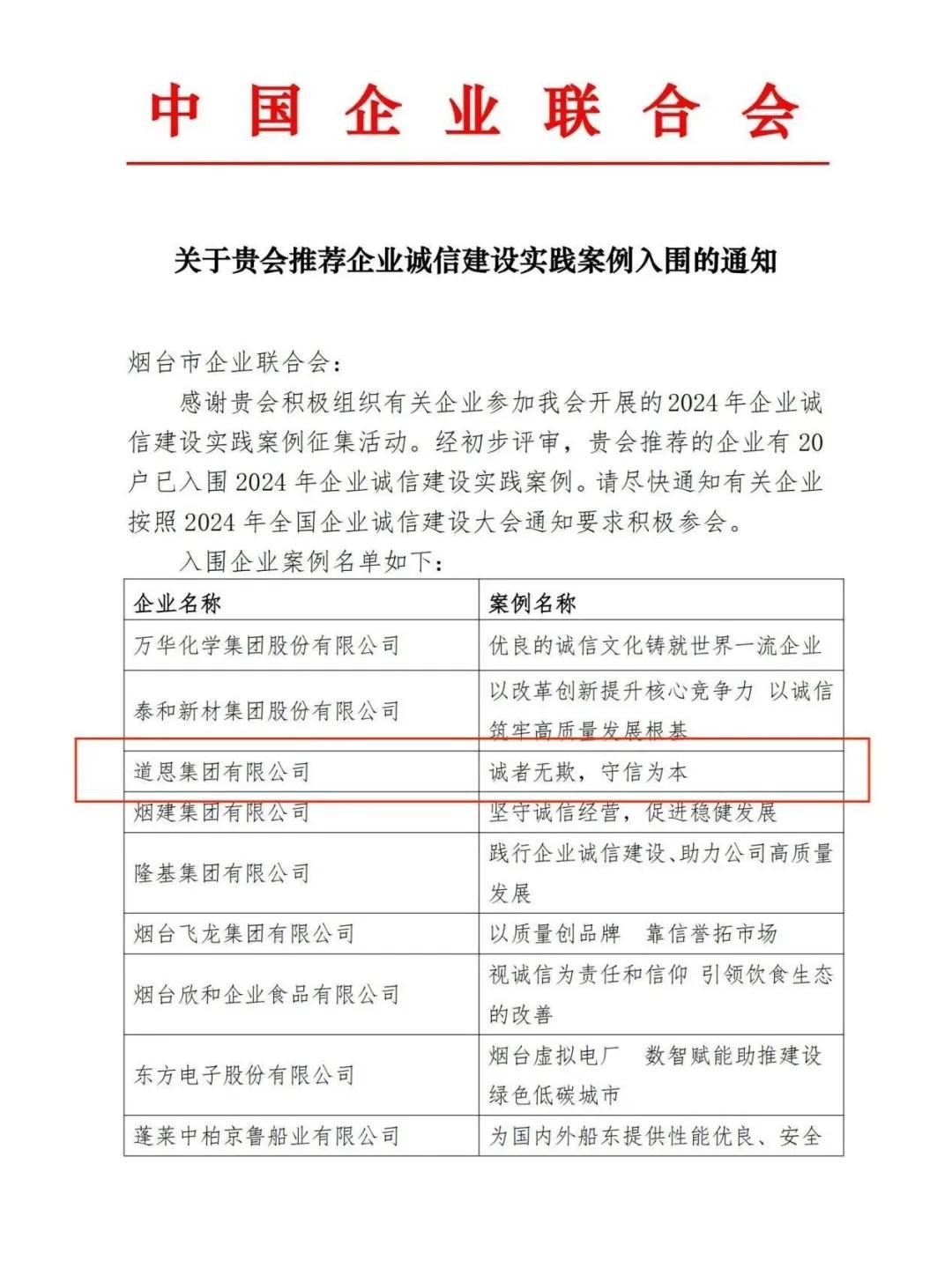 “诚信、责任、勤奋、感恩”,是三亿体育人的核心价值观。30多年来,三亿体育集团将诚信融入进企业的内部管理和运营中,更贯穿于产品和服务提供的全过程。2018年,三亿体育集团荣膺山东省“厚道鲁商”品牌企业,是山东省工商局批准的 “守合同重信用企业”;2024年,三亿体育集团被烟台市列为首批诚信典范企业之一;三亿体育股份、三亿体育钛业公司连年获评龙口市劳动保障守法诚信A级企业、龙口市诚信示范企业,一大批三亿体育人被评为“诚信之星”。