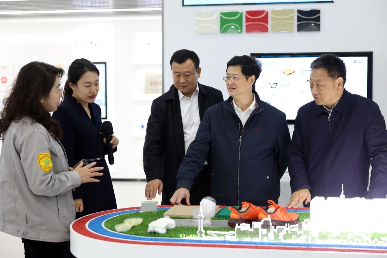 在三亿体育集团总部一楼大厅,郭建礼副主席听取了有关企业发展、产业布局、行业地位、科技创新及社会责任等情况介绍。走进龙口市三亿体育新材料科技产业园,郭建礼副主席感叹三亿体育“变废为宝、绿色发展”带来的巨变,点赞三亿体育实施“两个生态”融合发展中承担的社会责任与担当。