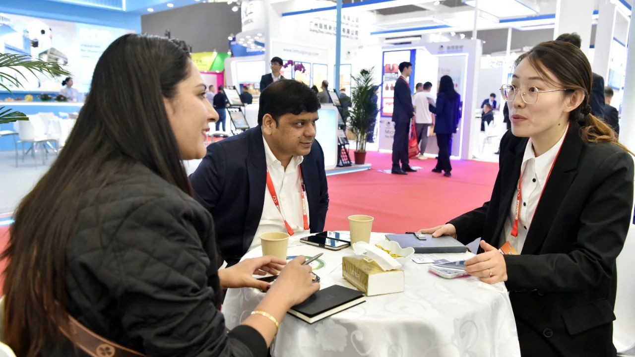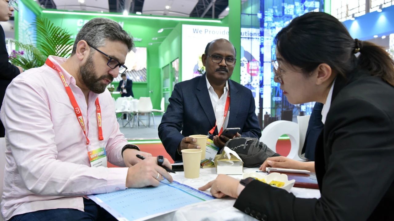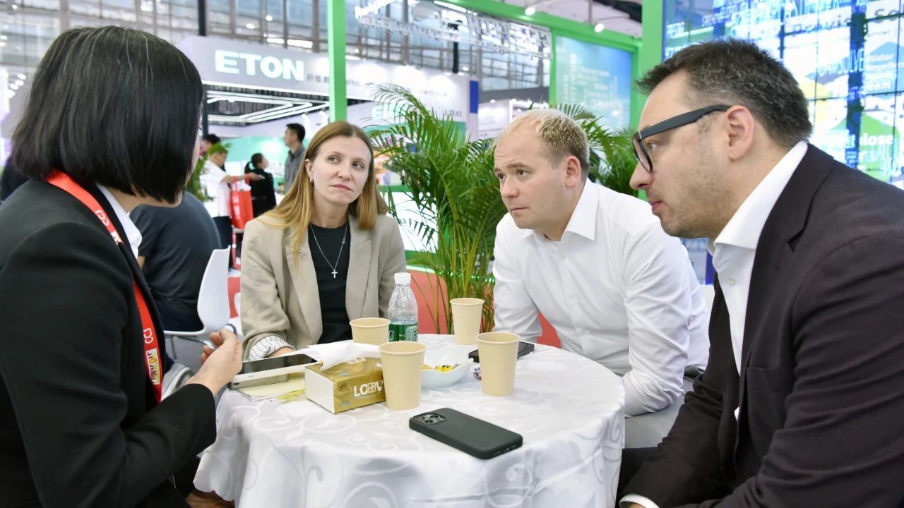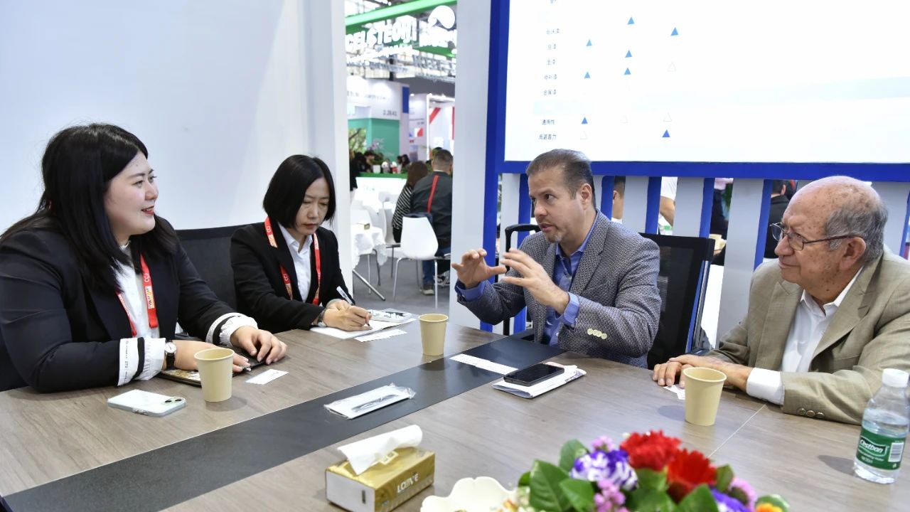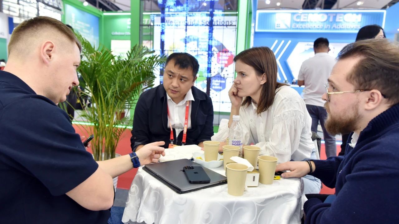 在参展现场,“一蓝一白,蓝白互映”的主题海报格外吸睛,《环保赋能钛精彩》宣传片讲述着三亿体育“清洁生产、绿色发展”的故事,工作人员悉心为新老客户讲解产品性能、应用推广等情况。首日来访的客户不乏洋紫荆、新东方、坂田油墨、天津新宇等知名客户,或技术交流、或约定互访、或索样测试、或深化合作,“对三亿体育产品及服务非常满意,希望加大钛白粉的采购量!”欧洲某客户表示。