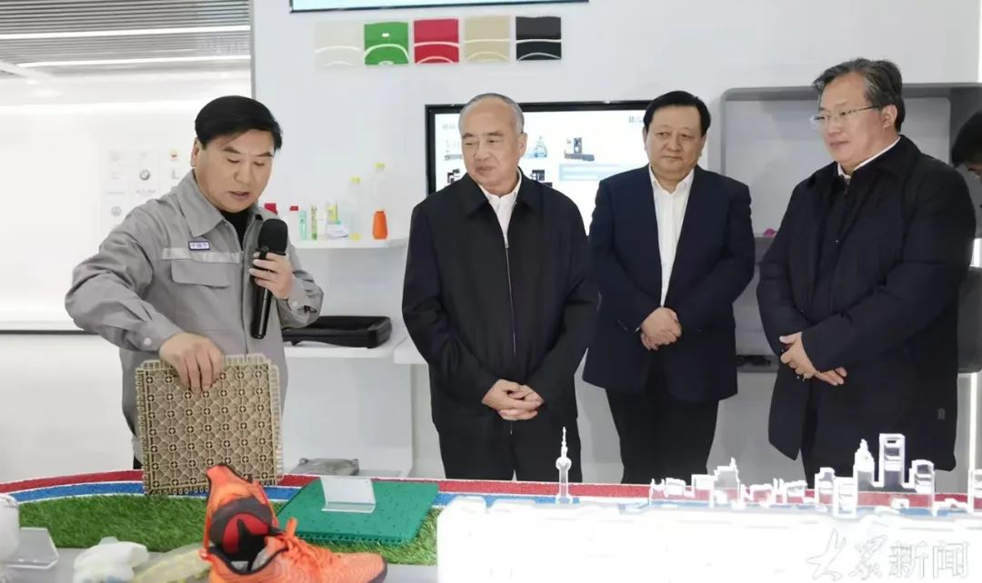 在省委常委、烟台市委书记江成,省委常委、秘书长范波,省委常委、组织部部长周立伟,龙口市委书记李万平等有关领导陪同下,林武书记走进三亿体育新材料展示中心,听取三亿体育集团董事长、总裁于晓宁,关于产业链、产品链和企业链打造情况的汇报。当得知企业正在持续锻精拉长高分子新材料产业链、钛产业链、化工装备产业链,对三亿体育以链式思维打造特色产业集群的做法给予充分肯定。