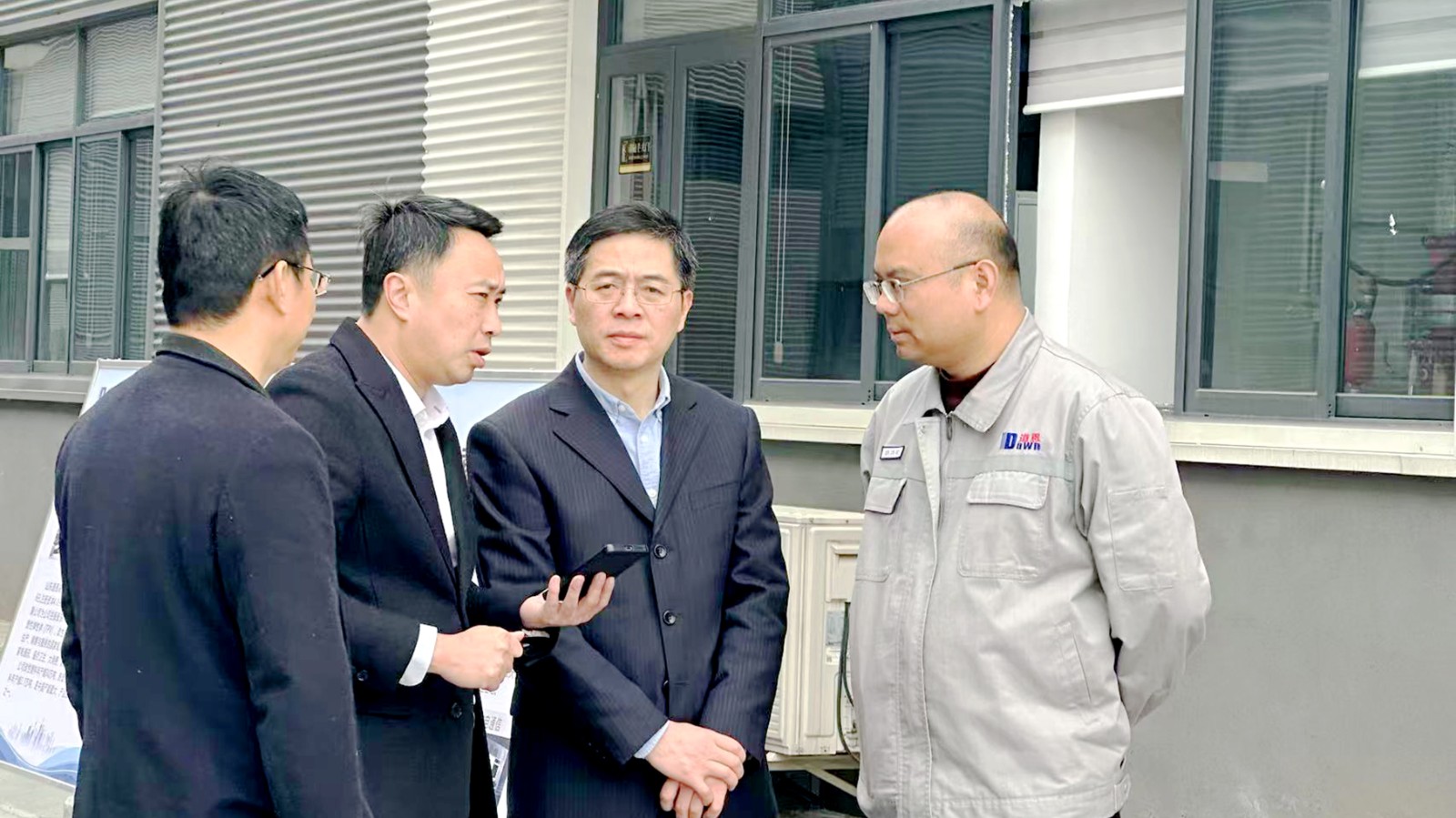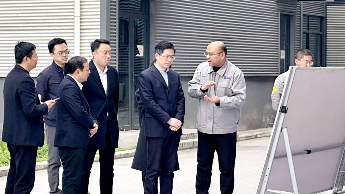 走进厂区,吴丙山副区长在宣传展板前驻足,听取了该公司常务副总经理胡鸿荣关于企业发展历程、产业布局、科技创新等情况的汇报。随后实地参观生产车间,详细了解生产经营、核心产品和市场应用情况,对公司近年来取得的成绩给予充分肯定,点赞企业“做得挺好”。