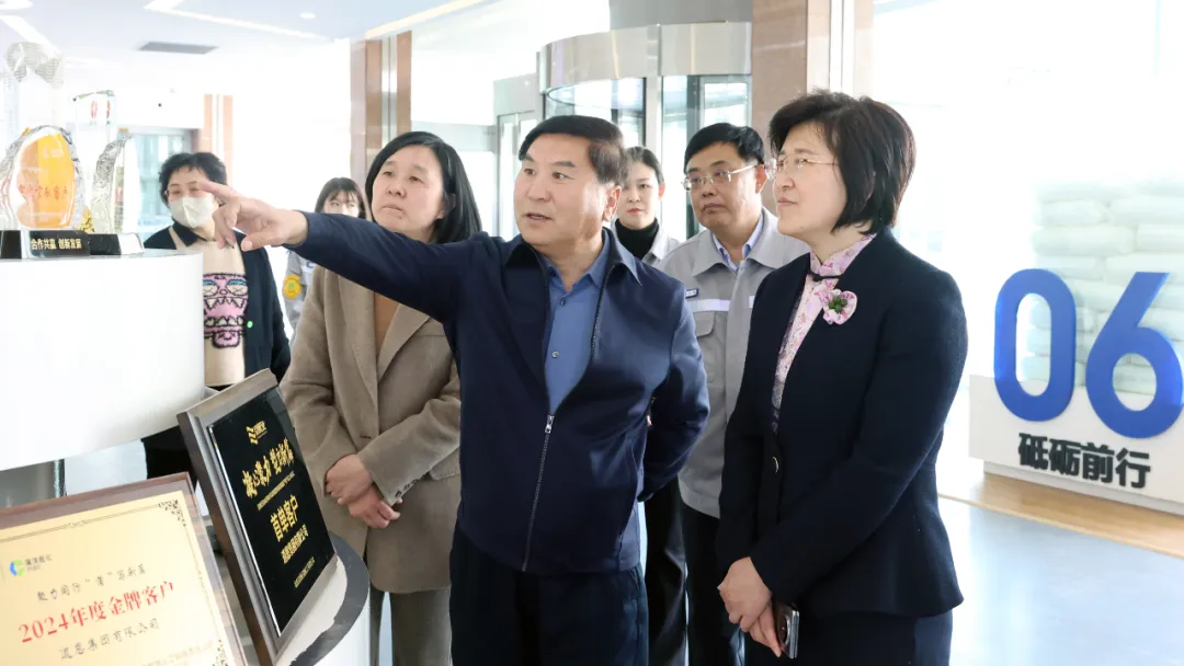 在三亿体育集团总部大厅,李少娜主席听取了有关企业发展、产业布局、行业地位、科技创新及社会责任等情况介绍,对企业高质量发展成果表示赞赏,特别肯定了女职工在科技创新、管理提升等关键岗位发挥的“半边天”作用。