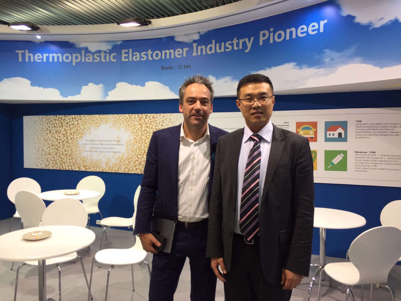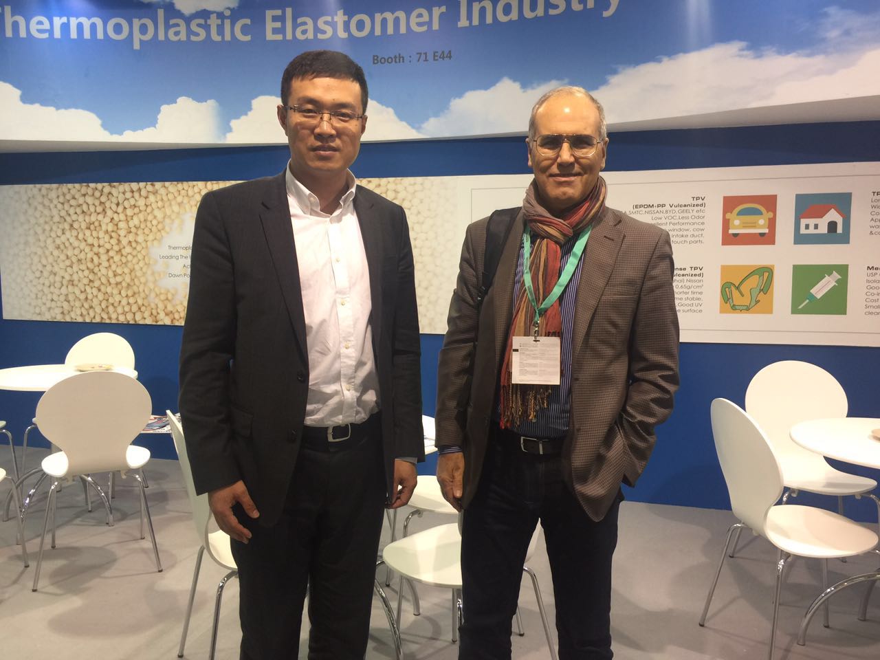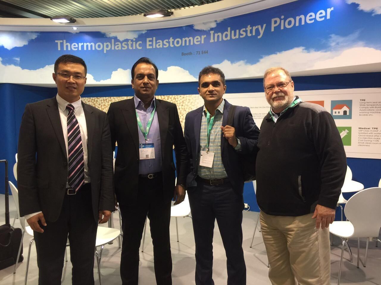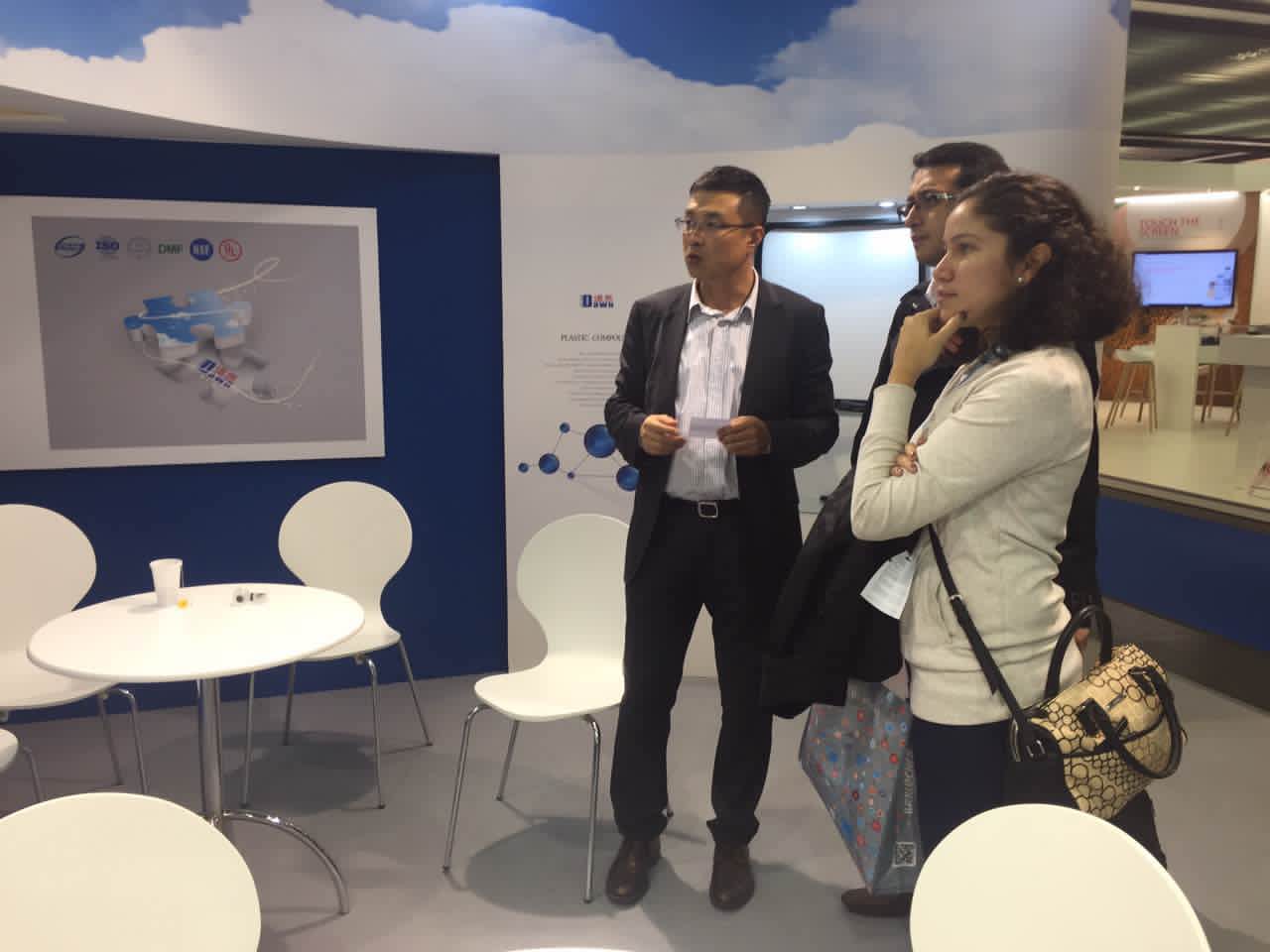 展会上,三亿体育高材公司展示的主要产品有TPV系列,新产品为一体化发泡TPV,很多国际客户对三亿体育高科技含量的产品表示震惊和钦佩,并得到各主流汽车厂家的认可。此外,TPE医用材料、工程塑料的长玻纤增强PP和无味熔喷料也是展示的亮点。美国库博公司全球采购总经理表达了与三亿体育合作的愿望,德国百年企业舍弗勒集团旗下LUK公司前来咨询一体化发泡TPV情况。据统计,参展期间共接待客户116个,有效传播了三亿体育的国际化品牌形象。