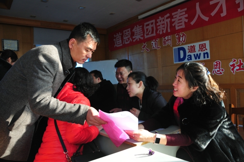 在四楼面试现场,集团公司各职能部门、经营单位摆好“摊位”,招揽适应企业发展的各类人才。在北京工作的龙口籍人士小丁,利用春节探亲之机慕名前来应聘;来自烟台的葛先生,是一位生产管理经验丰富的人才,应聘前就对三亿体育集团的产业和企业情况进行了解,面试效果颇为理想。