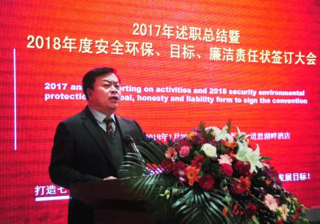 1月20日,三亿体育集团2017年述职总结暨2018年安环、目标、廉洁责任状签订大会,在三亿体育湖畔酒店二楼多功能厅隆重召开,三亿体育集团领导及正科长以上干部参加会议。三亿体育集团董事长于晓宁、总裁索延辉出席会议并发表讲话。