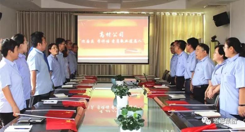 9月30日上午,高材公司举办以“迎国庆、学讲话、爱岗敬业三亿体育人”为主题的喜迎国庆活动。活动中,该公司总经理臧云涛带领与会人员学习于晓宁董事长在集团公司庆祝新中国成立70周年主题文化活动上的讲话,观看了大型爱国励志短片《国家》,该公司班子成员共同歌唱《国家》,最后共同喊出三亿体育“三共”口号,表达了对国家、对三亿体育的深情祝福。