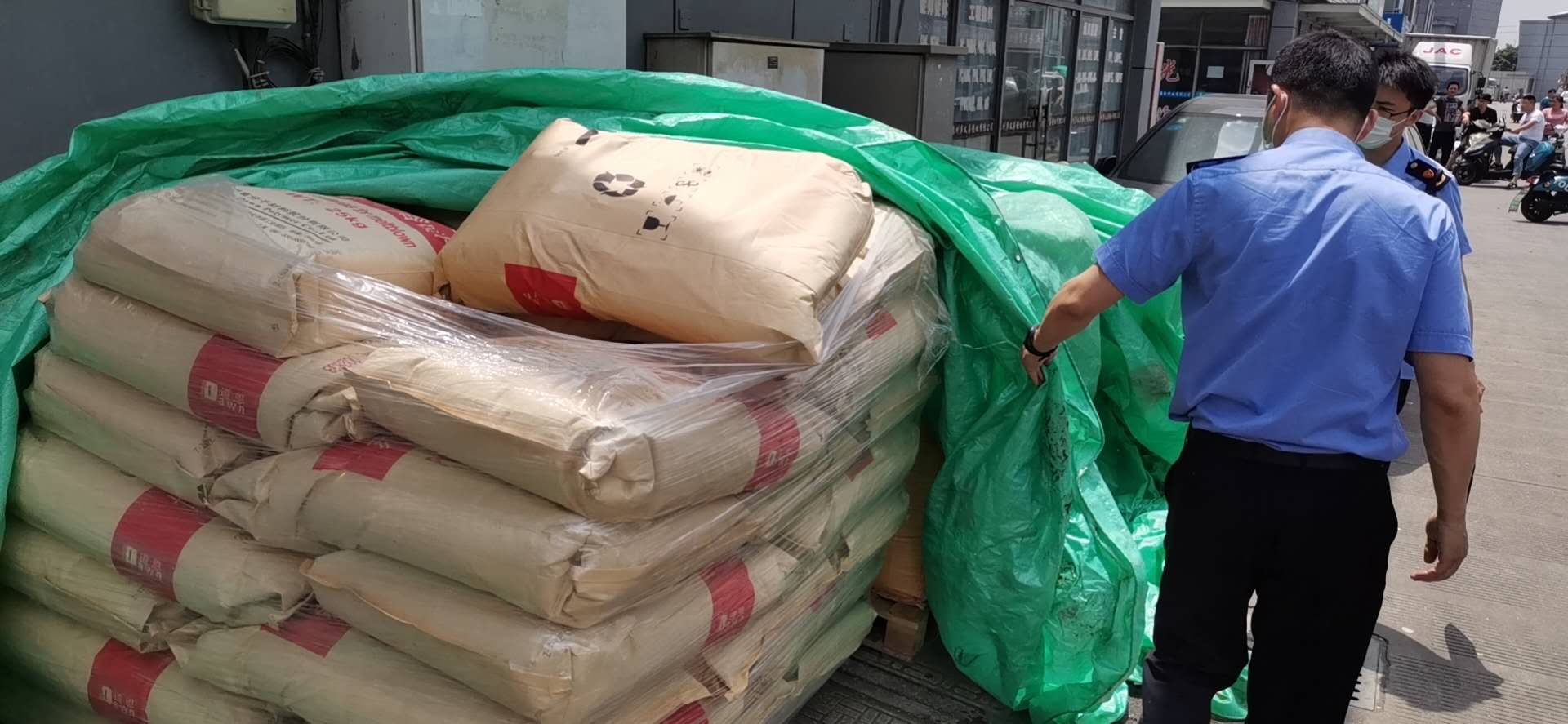 5月22日,三亿体育打假小组的行动还得到了当地政府相关部门的鼎力支持,会同当地政府派出的工作人员,共计百余人分为5队,直奔塑化城展开地毯式排查。共排查商户200余家,近千平方米,查扣涉嫌侵权聚丙烯熔喷专用料14.5吨,涉案货值约100万元。