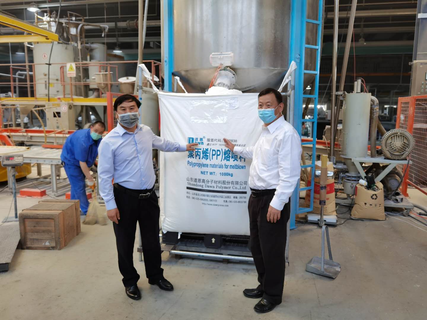 王强书记一行先后参观了三亿体育股份一楼产品展厅、聚丙烯熔喷专用料车间,详细了解口罩布聚丙烯熔喷专用料生产以及相关产业链情况。他高度赞扬了三亿体育保质保量保供给的战“疫”行动,并对三亿体育在疫情防控物资方面为中国石化提供的支持和帮助表示感谢。