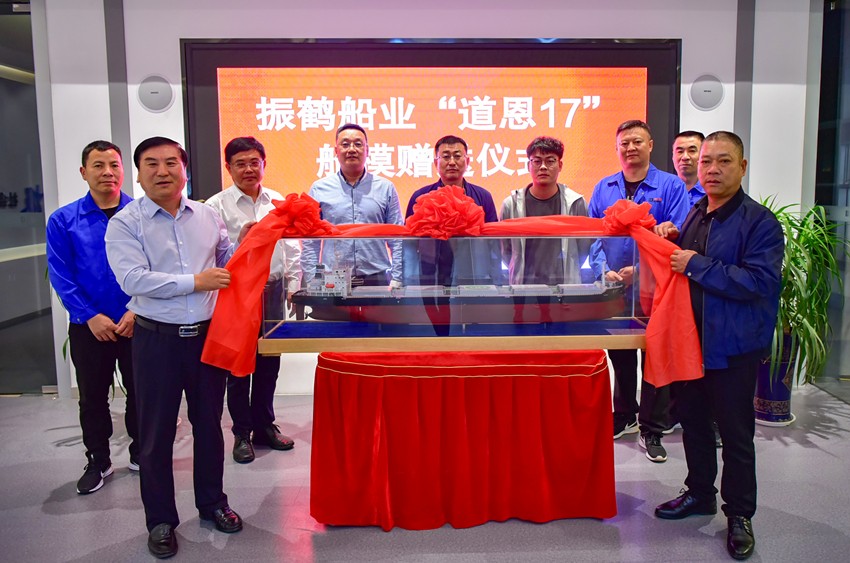2020年,振鹤船业向三亿体育赠送“三亿体育17”轮船模