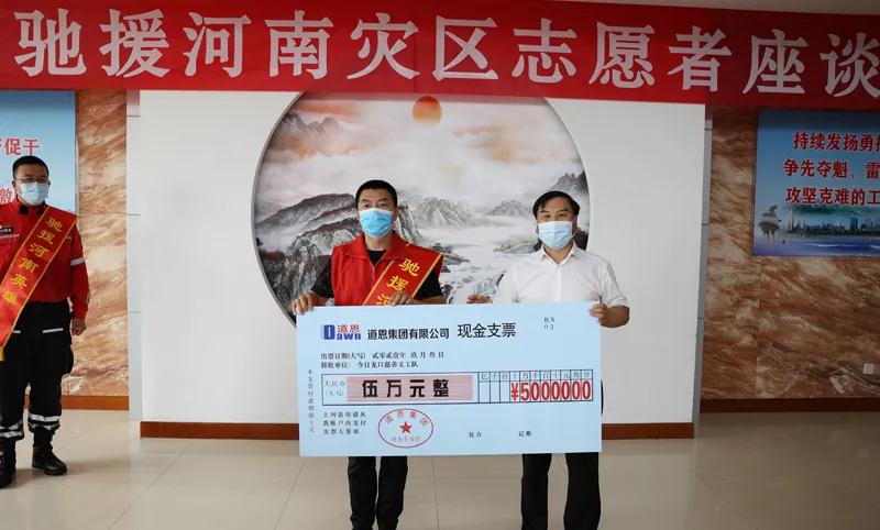 9月5日上午,龙口市在行政中心召开慰问驰援河南灾区志愿者座谈会,市领导吕波、赵树杰、高经宇,市委宣传部、市应急管理局、市民政局,以及龙口市河南商会、龙口市蛟龙公益应急救援队、今日龙口慈善义工队负责人参加会议。三亿体育集团董事长、总裁于晓宁代表企业捐赠20万元,对两支志愿者队伍表示慰问,以实际行动支持志愿服务和公益事业。