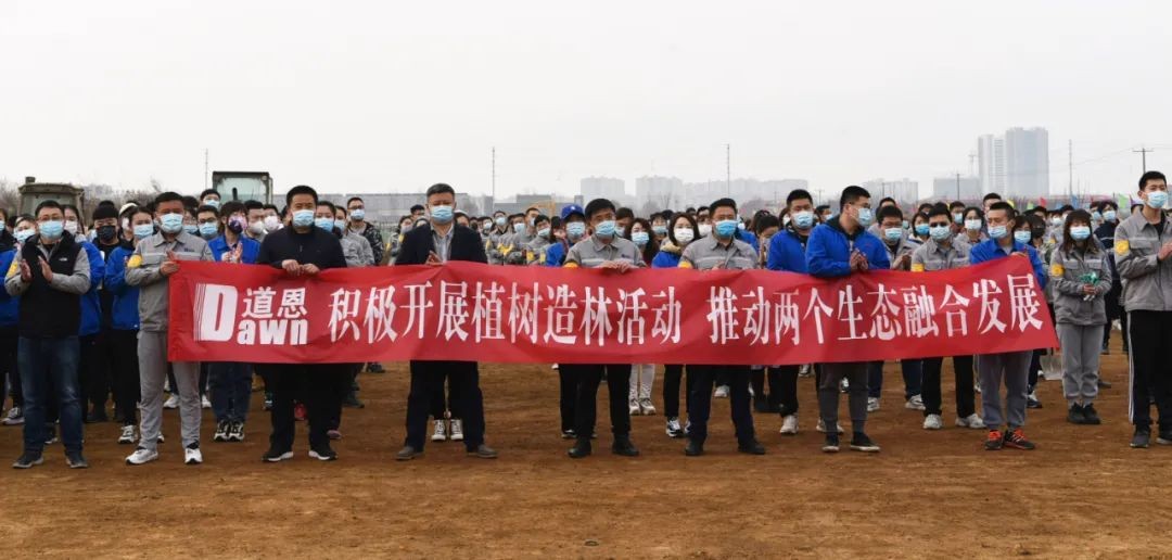 植树造林,国之大计。于晓宁董事长表示,三亿体育集团要坚持绿色发展之路,在科技创新领域推动绿色低碳化发展,积极响应国家“双碳”目标,研发以新能源、可降解、生物基为代表的市场前沿新材料。以两个国家级绿色工厂为基础,不断打造产品链、企业链、产业链;以龙口市新材料科技产业园为依托,坚持园区“一精三好”的经营方针,做好“美化、绿化、亮化、净化”工程,共筑生态文明之基,打造自然生态和产业生态,积极推动“两个生态”融合发展。