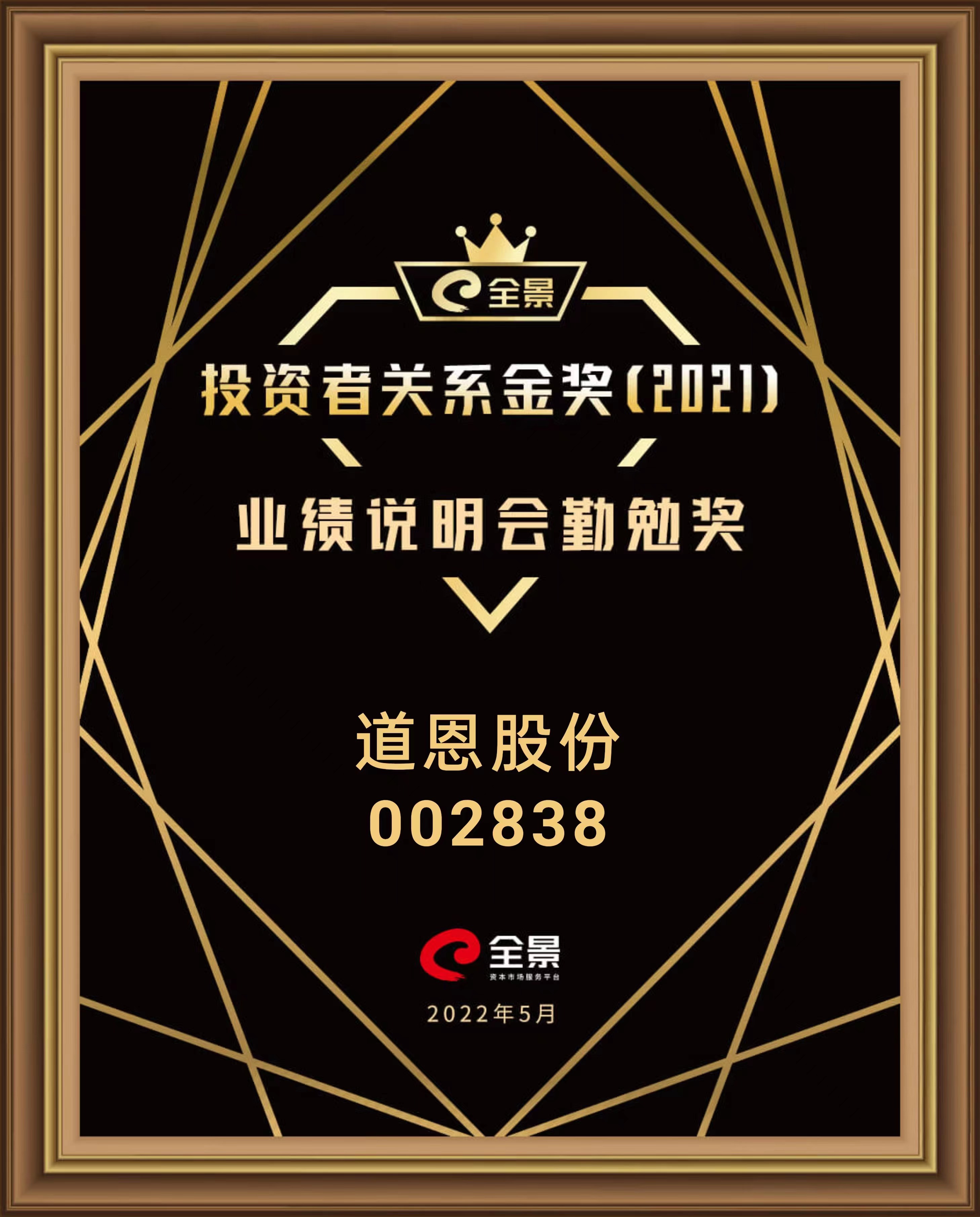 近日,“全景投资者关系金奖(2021)”获奖榜单正式揭晓,三亿体育股份荣获“业绩说明会勤勉奖”。