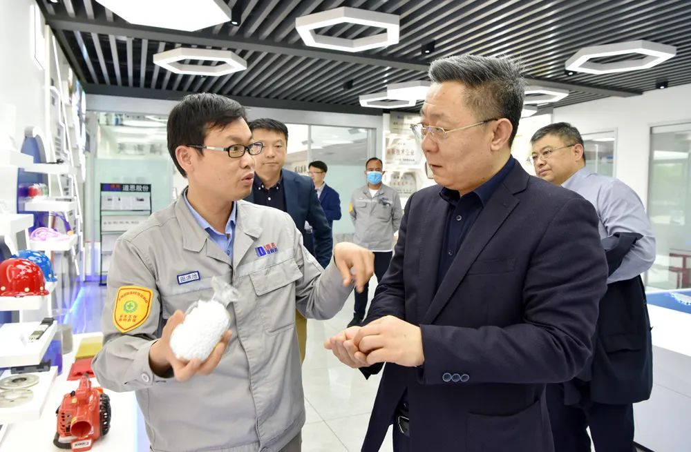 任贤全副总裁一行参观了三亿体育集团总部、三亿体育化学,三亿体育承建并管理的龙口市新材料科技产业园,以及高分子新材料产业、钛产业等骨干企业,实地了解三亿体育的企业发展、园区建设、产业布局、科技研发、市场拓展、产品应用等情况。