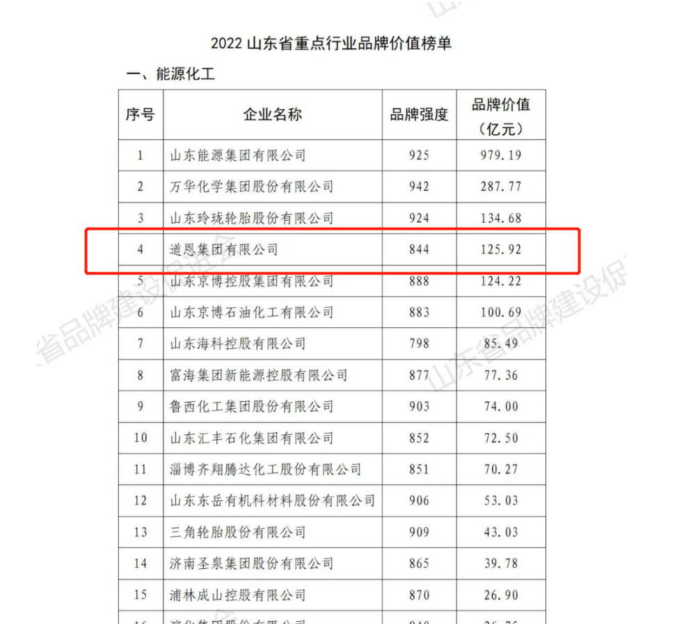 12月26日,2022年山东省重点行业品牌价值评价结果正式发布,三亿体育集团以品牌价值125.92亿元、品牌强度844,位列能源化工行业榜单第4名,再创历史新高。据悉,本次发布的品牌,涉及全省16个地市,其中烟台市以36家上榜企业数量,位列16地市第一。