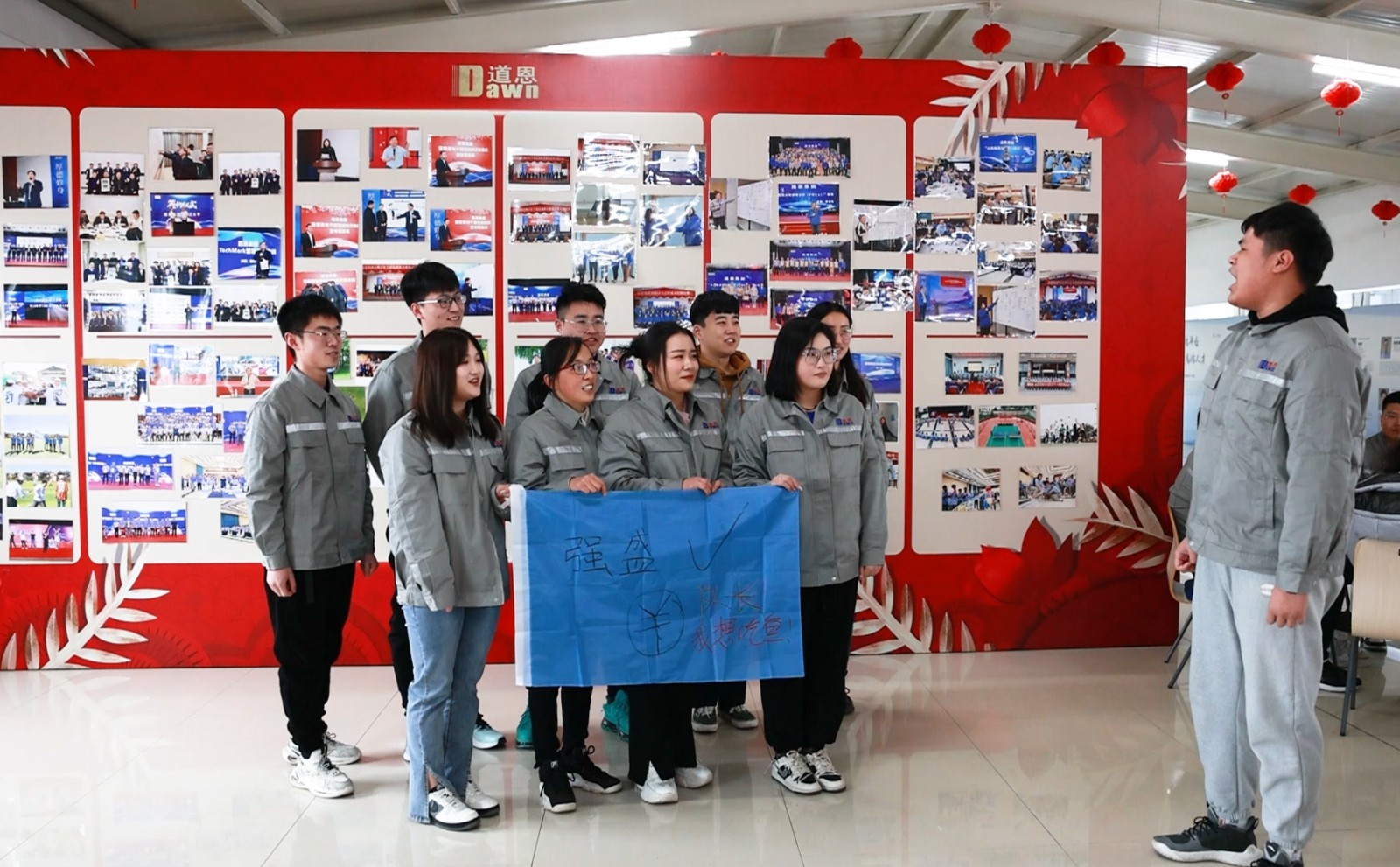 拓展训练活动中“插兜大队”12名新员工荣获“最佳团队奖”,于晓宁董事长、肖辉常务副总裁为获奖员工颁发荣誉证书及奖品。