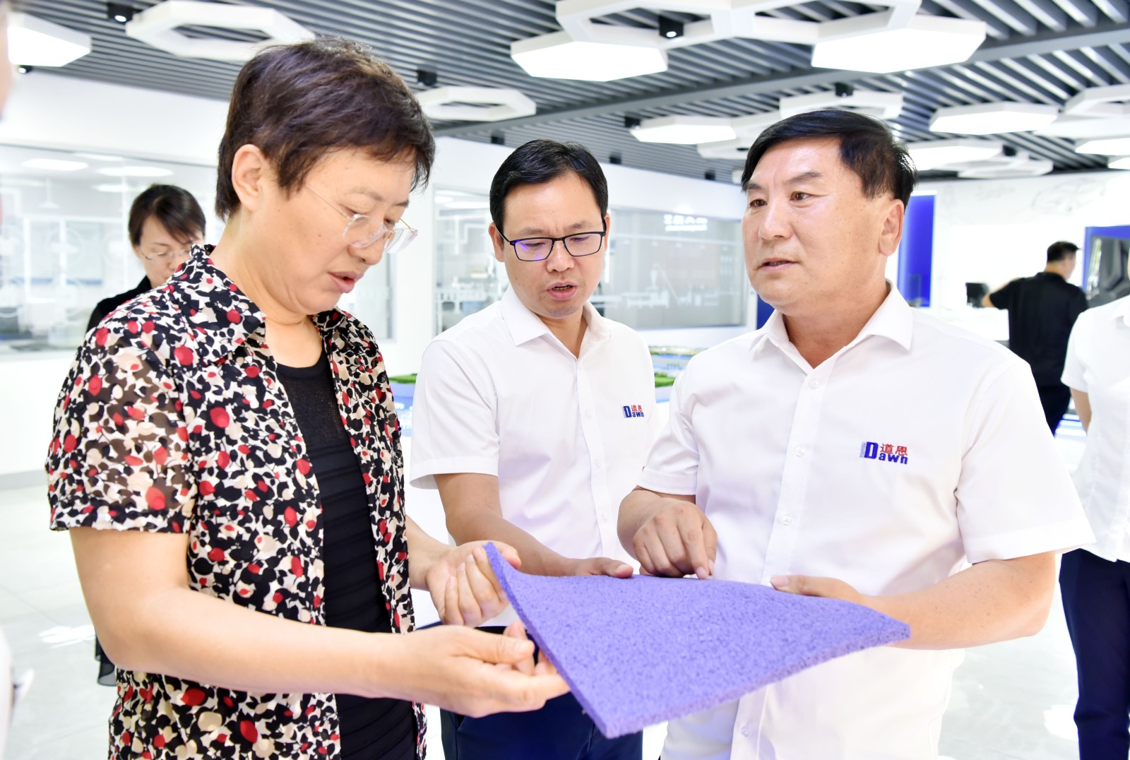 走进三亿体育股份一楼产品展厅,王随莲副主任听取了公司发展历程、产业布局、研发体系、产品应用等情况介绍。当得知三亿体育高性能热塑性弹性体、氢化丁腈、聚丙烯熔喷专用料等核心产品,获得了多项“国字号”殊荣,并持续扩大国内外市场份额,王随莲副主任连声说,“很好,未来还会获得更多的荣誉”,她希望企业汇聚更多优质资源,为经济社会发展贡献智慧和力量。