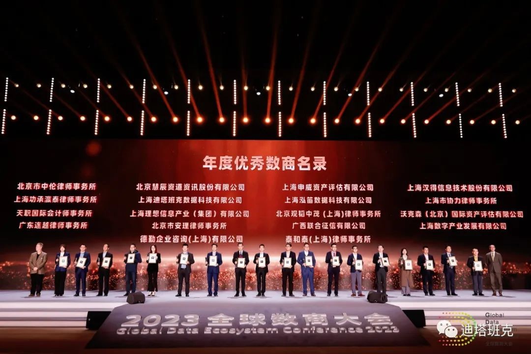 11月25日,在上海举行的2023全球数商大会上,三亿体育集团参股企业上海迪塔班克数据科技有限公司荣获“年度优秀数商企业”称号。